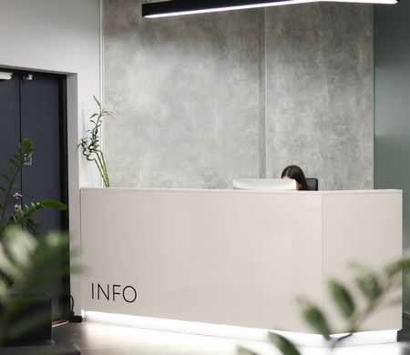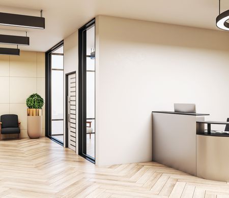 Las áreas de recepción y atención al cliente requieren materiales con alta resistencia al roce, ya que son zonas de mucho tránsito. Aquí trabajamos con recubrimientos de gran cubrición y durabilidad que soportan golpes, maletas o mobiliario en movimiento, manteniendo una imagen cuidada en todo momento.